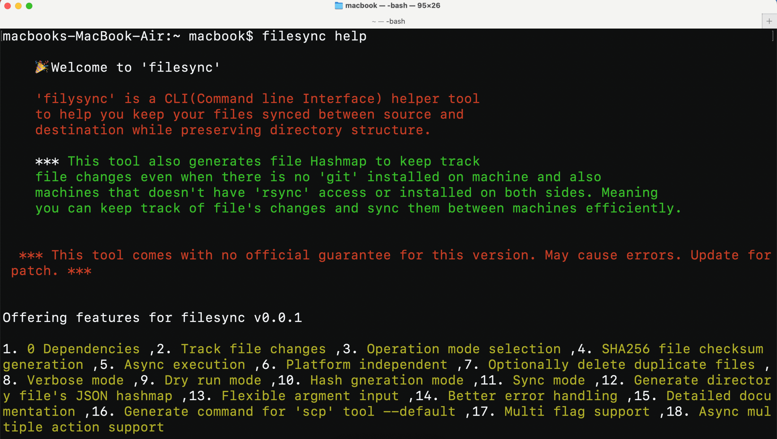 'filesync' - An alternative helper tool to deal with peer to peer file and folder synchronization as a missing feature of most popular CLI file synchronization tools.